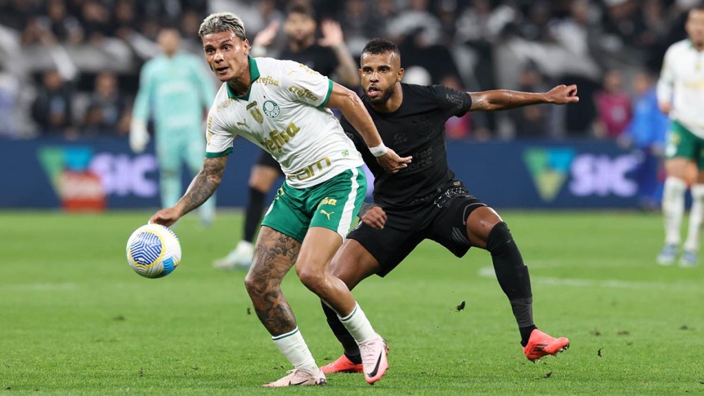 O Palmeiras começou o clássico com mais intensidade e logo no primeiro minuto, Flaco López quase abriu o placar após um erro na saída de bola do Corinthians. Aos 11 minutos, Felipe Anderson teve uma boa chance de cabeça, mas o goleiro Hugo Souza fez uma defesa crucial.