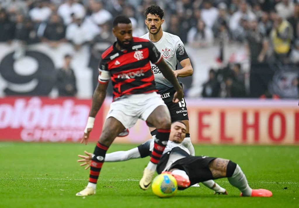 O jogo ganhou contornos dramáticos logo aos 27 minutos do primeiro tempo, quando Bruno Henrique, do Flamengo, foi expulso após uma entrada perigosa em Matheuzinho. Com um jogador a mais, o Corinthians teve a chance de pressionar, mas a equipe comandada por Ramón Díaz não conseguiu transformar a superioridade numérica em gols.